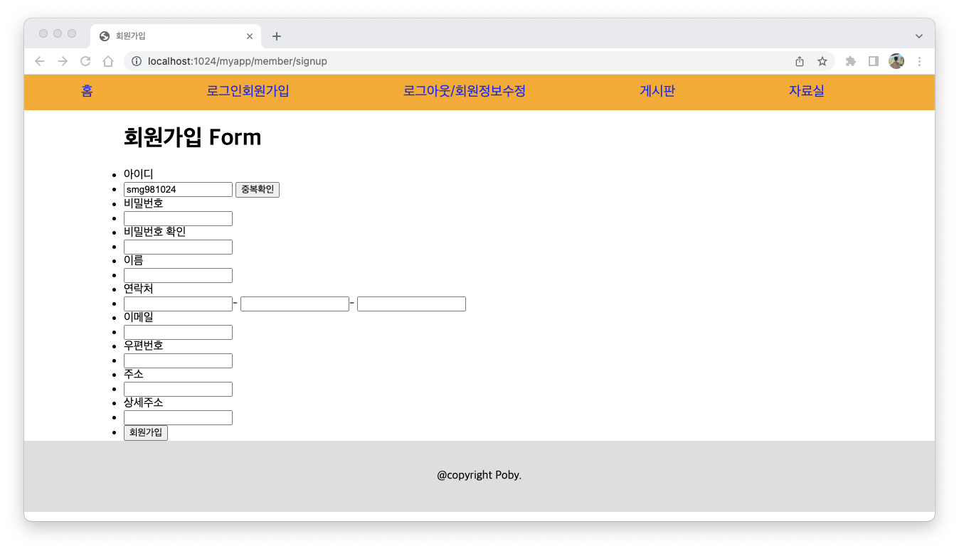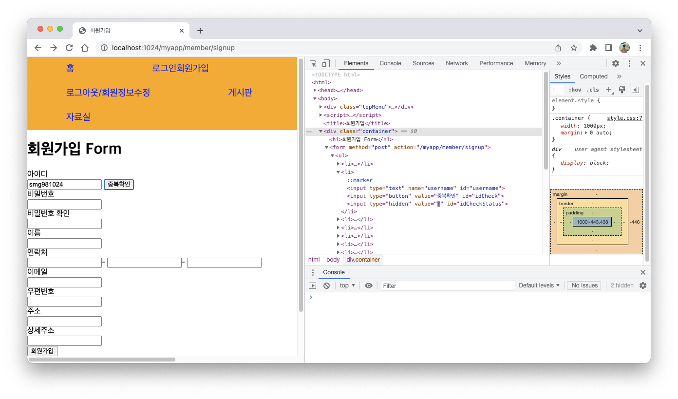 회원가입 페이지에서 중복확인을 한 상태인지 아닌지 상태를 알려주는 hidden타입의 input을 넣어주자.