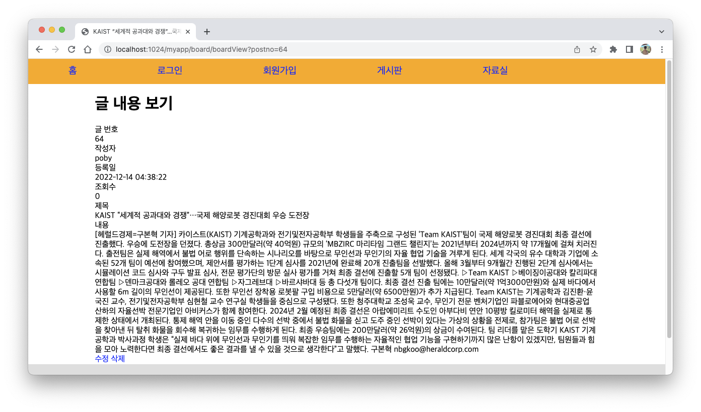 | 12.14.(수) Spring Framework(21): 게시판 기능(6) (2) | 2022.12.17 |