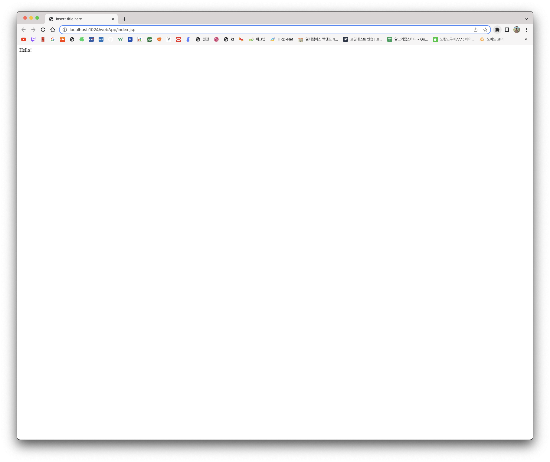 이렇게 index.jsp만 남기고 나머지는 지워주자. 로컬호스트로 1024번 포트를 입력하면 가장 먼저 호출되는 웹 페이지를 설정한 것이다.