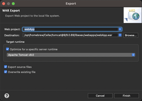 보통 WAR파일을 아무데나 받고 직접 옮겨주지만, 우린 바로 서버가 있는 경로로 넣어주자.