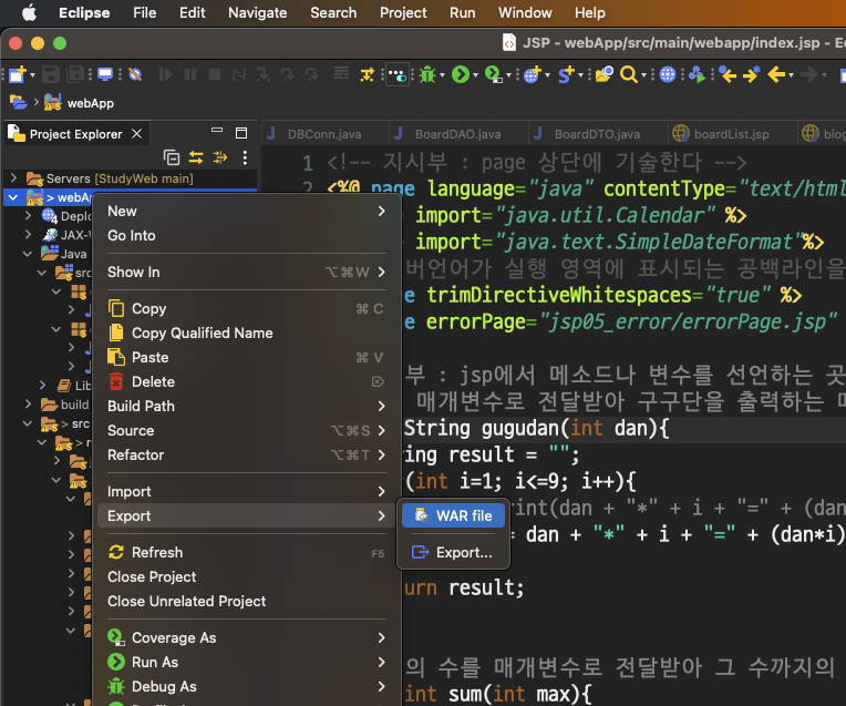 우리 컴퓨터에 내장된 tomcat서버에 배포할 것이다.