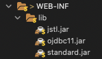 DB에 접속을 할 것이고, JSTL도 사용할 것이기 때문에 일전에 다운로드 받아놓은 ojdbc11.jar과 jstl.jar, standard.jar을 webMVC/WEB-INF/lib에 복사하자.