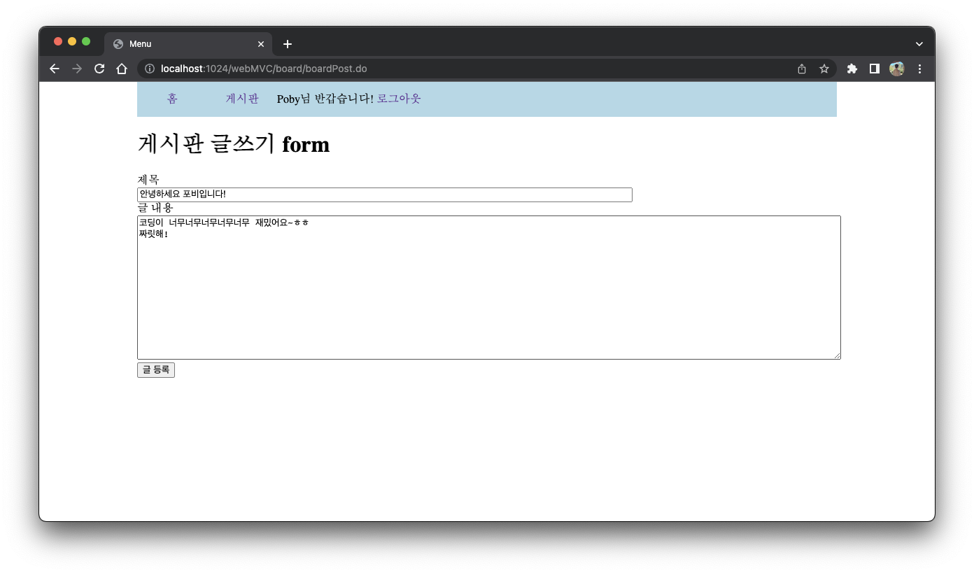 이제 로그인을 했으니 게시판을 만들어서 글을 작성하고, 수정하고, 삭제할 수 있게 코드를 짜보자.