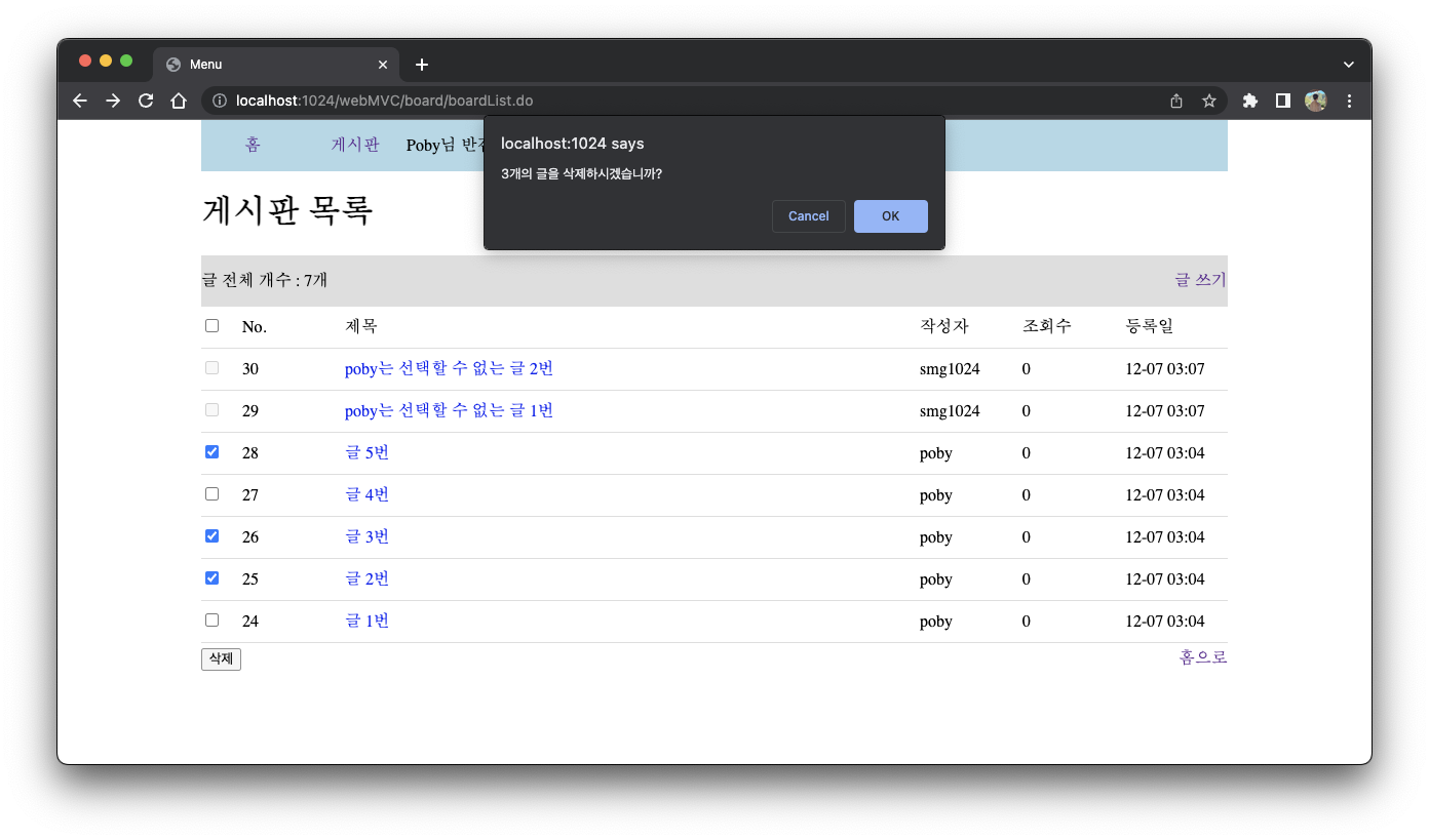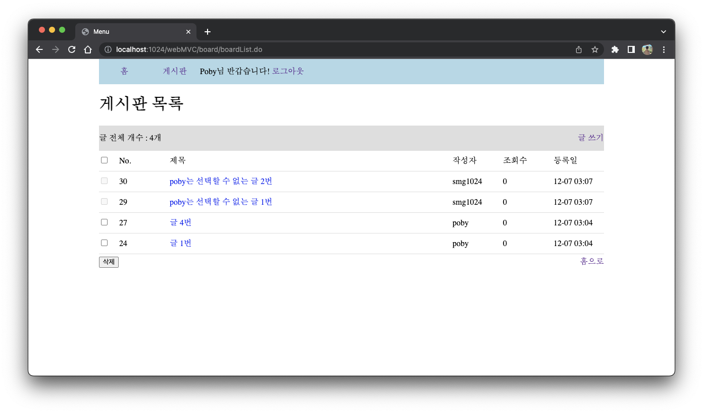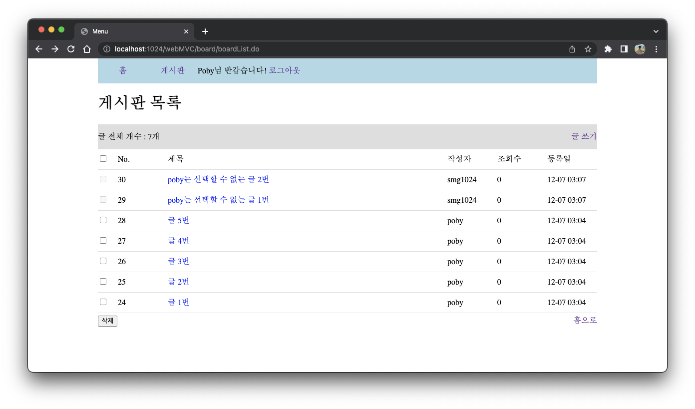이제 게시판 목록에서 다중 선택을 해서 하나 이상의 글을 삭제하는 기능을 추가할 것이다.