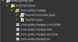 myapp패키지 밑에 controller, service, dao, vo패키지를 생성하자.