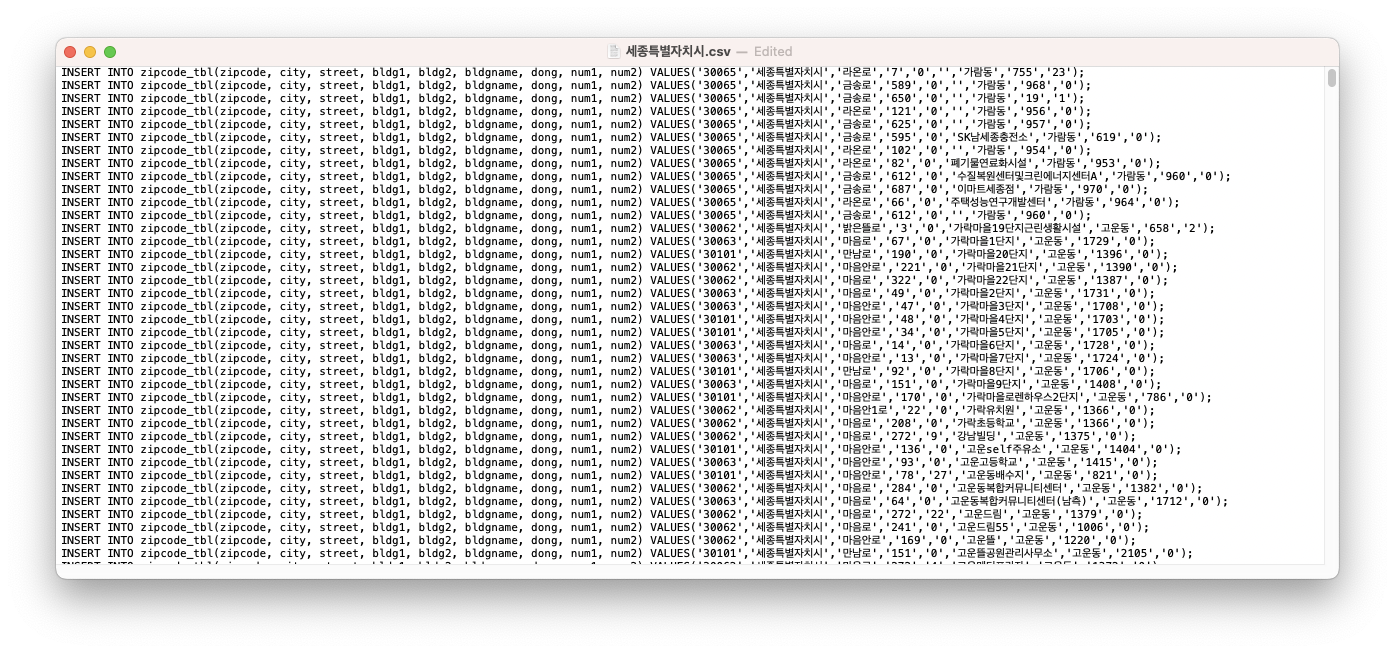 이렇게 도시별로 모든 주소가 텍스트 형태로 적힌 파일을 받을 수 있다.
