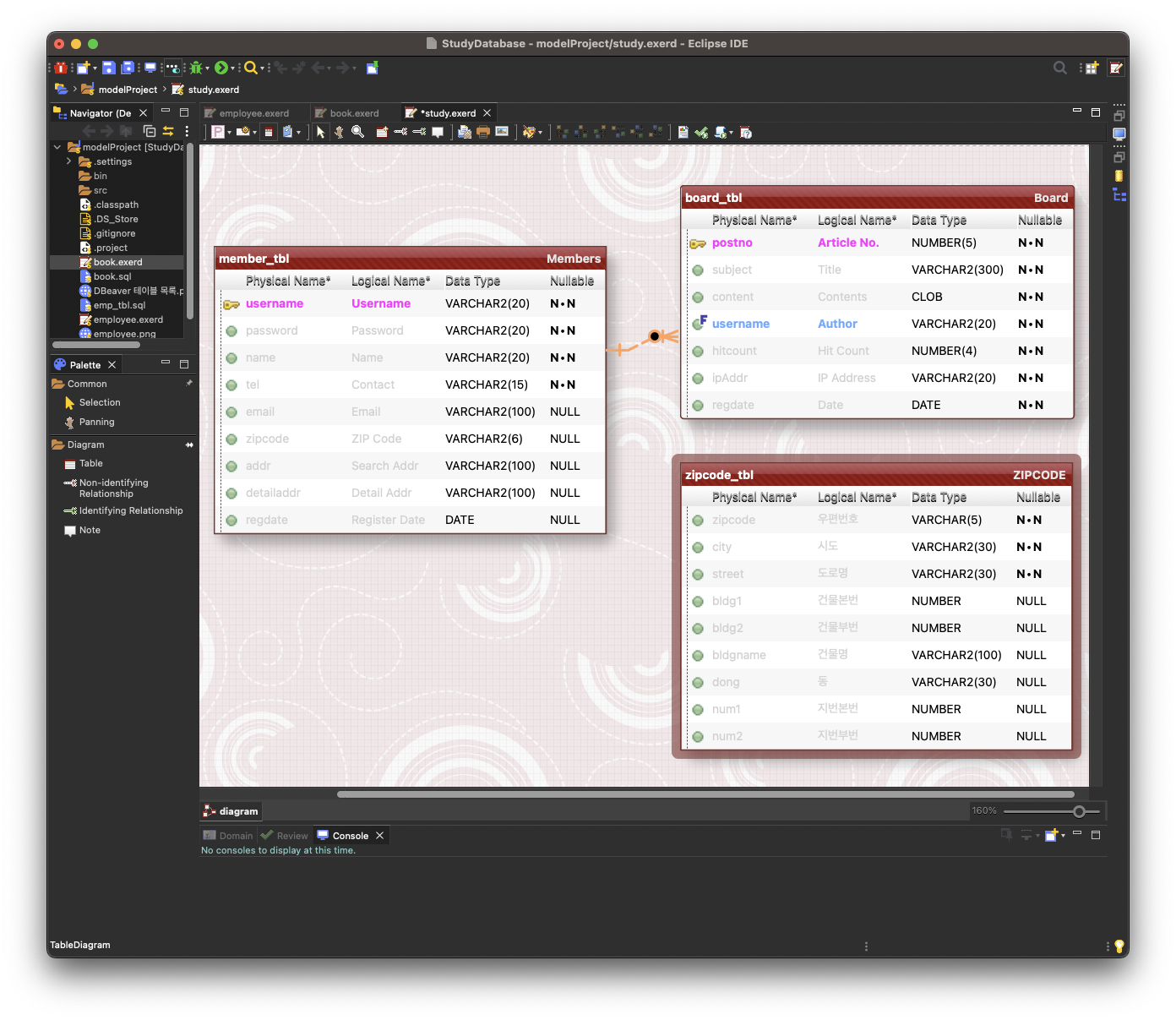 이렇게 보기 좋게 표로 만들어준다. eXERD를 켜서 우편번호 테이블을 생성해보자.